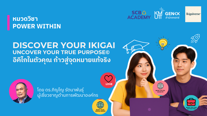 บางที...คำตอบของชีวิต อาจอยู่ระหว่าง “สิ่งที่รัก” และ “สิ่งที่มีความหมาย” มาเรียนรู้แนวคิด อิคิไก (Ikigai) เพื่อค้นหาสมดุลระหว่างงาน ความสุข และคุณค่าในชีวิต หลักสูตรนี้จะพาคุณเข้าใจเหตุผลของการมีชีวิต และออกแบบชีวิตในแบบที่เป็นคุณ